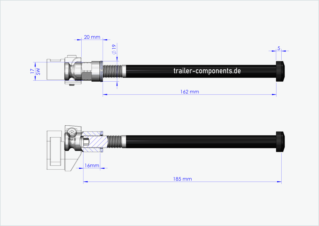 - É da sua responsabilidade determinar o tamanho correto da rosca e o comprimento de instalação [mm] do seu eixo passante atual na roda. Não tente instalar o nosso eixo passante com adaptador num tamanho de rosca diferente no cubo da sua roda traseira. Um tamanho de rosca incorreto pode danificar a sua bicicleta. Se não tiver a certeza do tamanho correto da rosca e do comprimento de instalação, contacte-nos por correio eletrónico ou telefone e teremos todo o gosto em ajudá-lo.