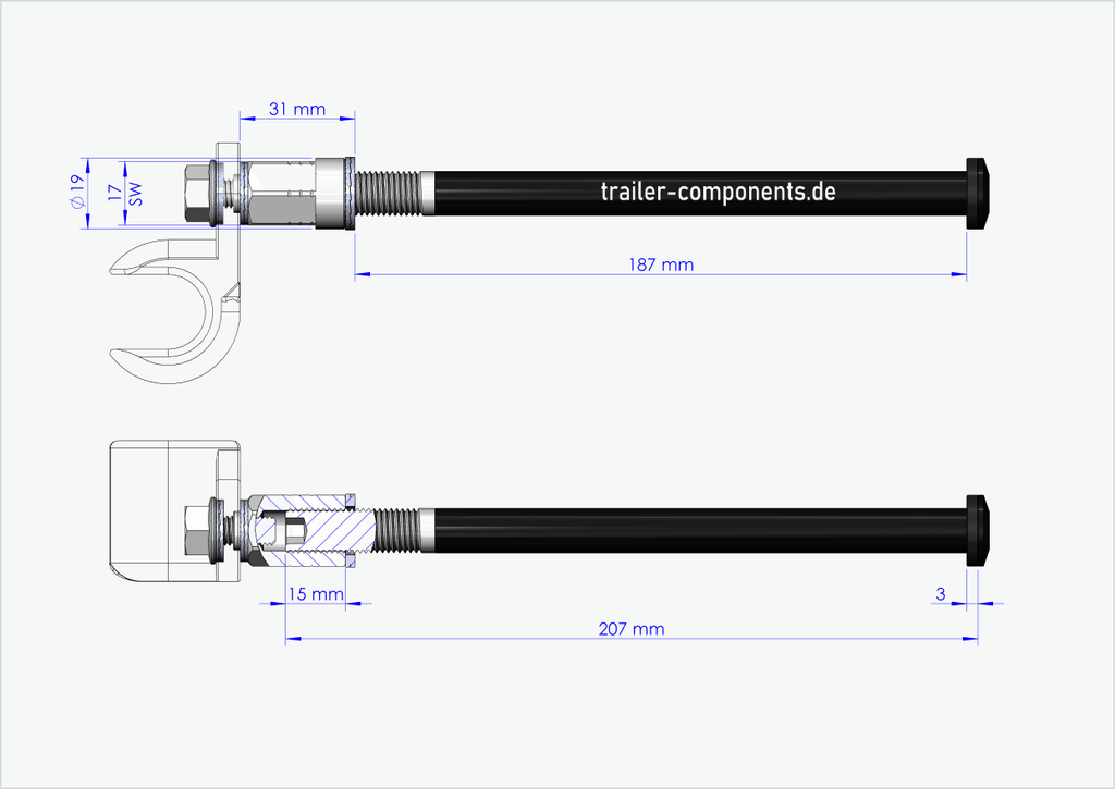 - É da sua responsabilidade determinar o tamanho correto da rosca e o comprimento de instalação [mm] do seu eixo passante atual na roda. Não tente instalar o nosso eixo passante com adaptador num tamanho de rosca diferente no cubo da sua roda traseira. Um tamanho de rosca incorreto pode danificar a sua bicicleta. Se não tiver a certeza do tamanho correto da rosca e do comprimento de instalação, contacte-nos por correio eletrónico ou telefone e teremos todo o gosto em ajudá-lo.