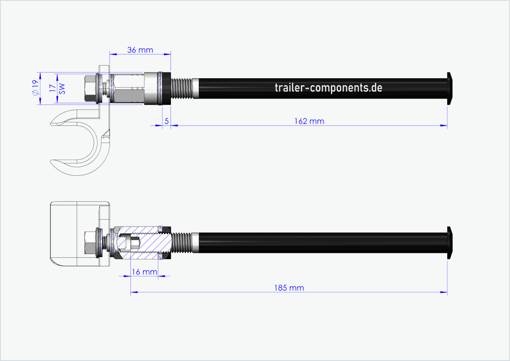 - É da sua responsabilidade determinar o tamanho correto da rosca e o comprimento de instalação [mm] do seu eixo passante atual na roda. Não tente instalar o nosso eixo passante com adaptador num tamanho de rosca diferente no cubo da sua roda traseira. Um tamanho de rosca incorreto pode danificar a sua bicicleta. Se não tiver a certeza do tamanho correto da rosca e do comprimento de instalação, contacte-nos por correio eletrónico ou telefone e teremos todo o gosto em ajudá-lo.
