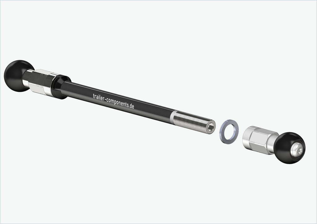 Cada um dos nossos eixos passantes é personalizado para si. Necessitamos do comprimento exato de instalação [mm] e do tamanho da rosca (passo) do seu eixo passante atualmente instalado.