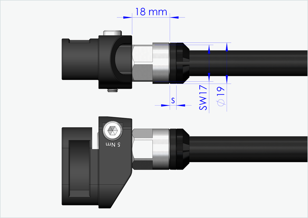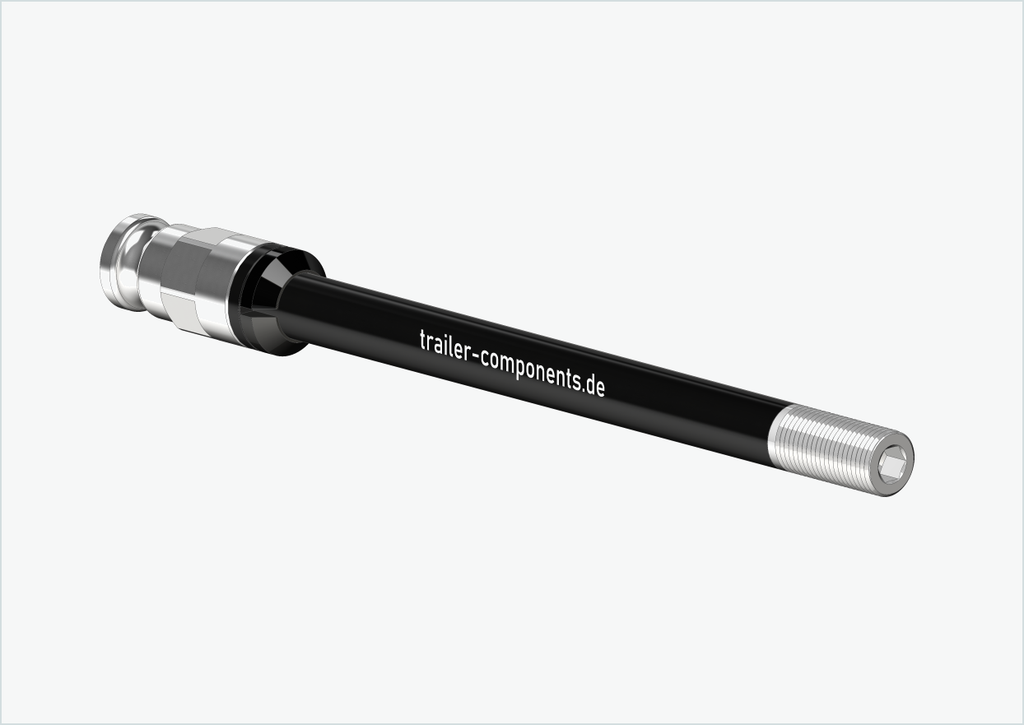 Cada um dos nossos eixos passantes é personalizado para si. Necessitamos do comprimento exato de instalação [mm] e do tamanho da rosca (passo) do seu eixo passante atualmente instalado.