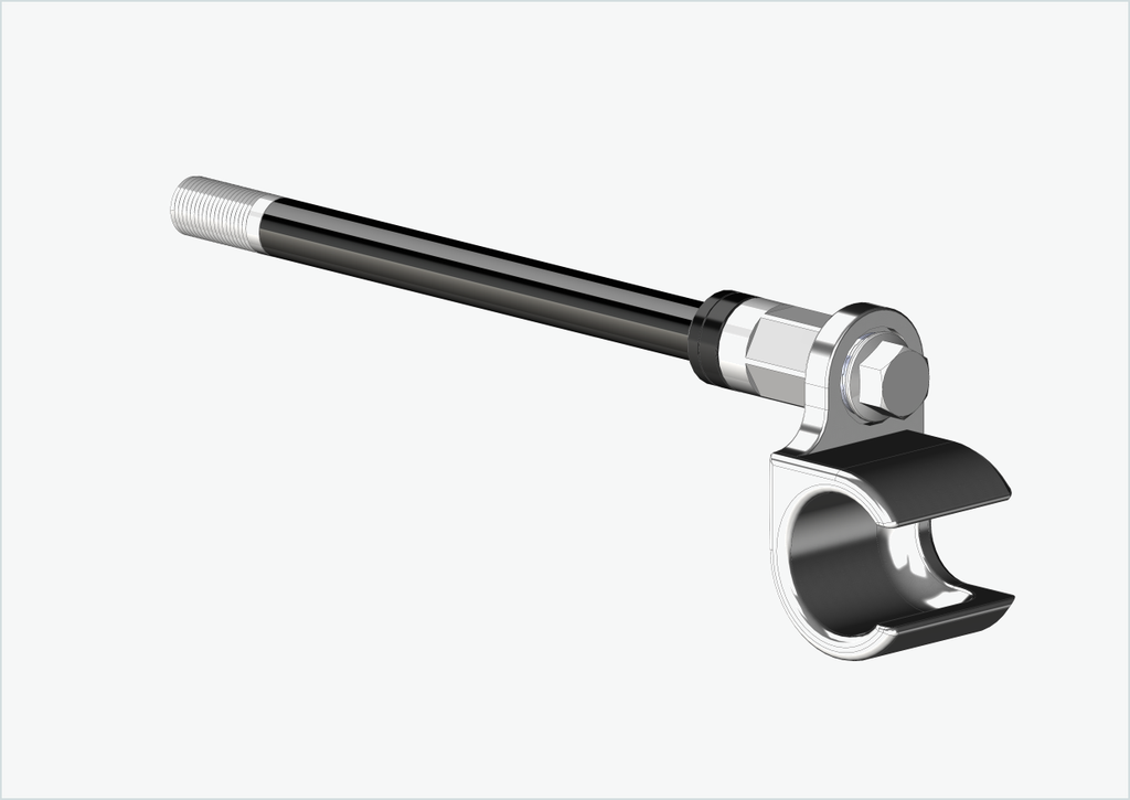 Cada um dos nossos eixos passantes é personalizado para si. Necessitamos do comprimento exato de instalação [mm] e do tamanho da rosca (passo) do seu eixo passante atualmente instalado.